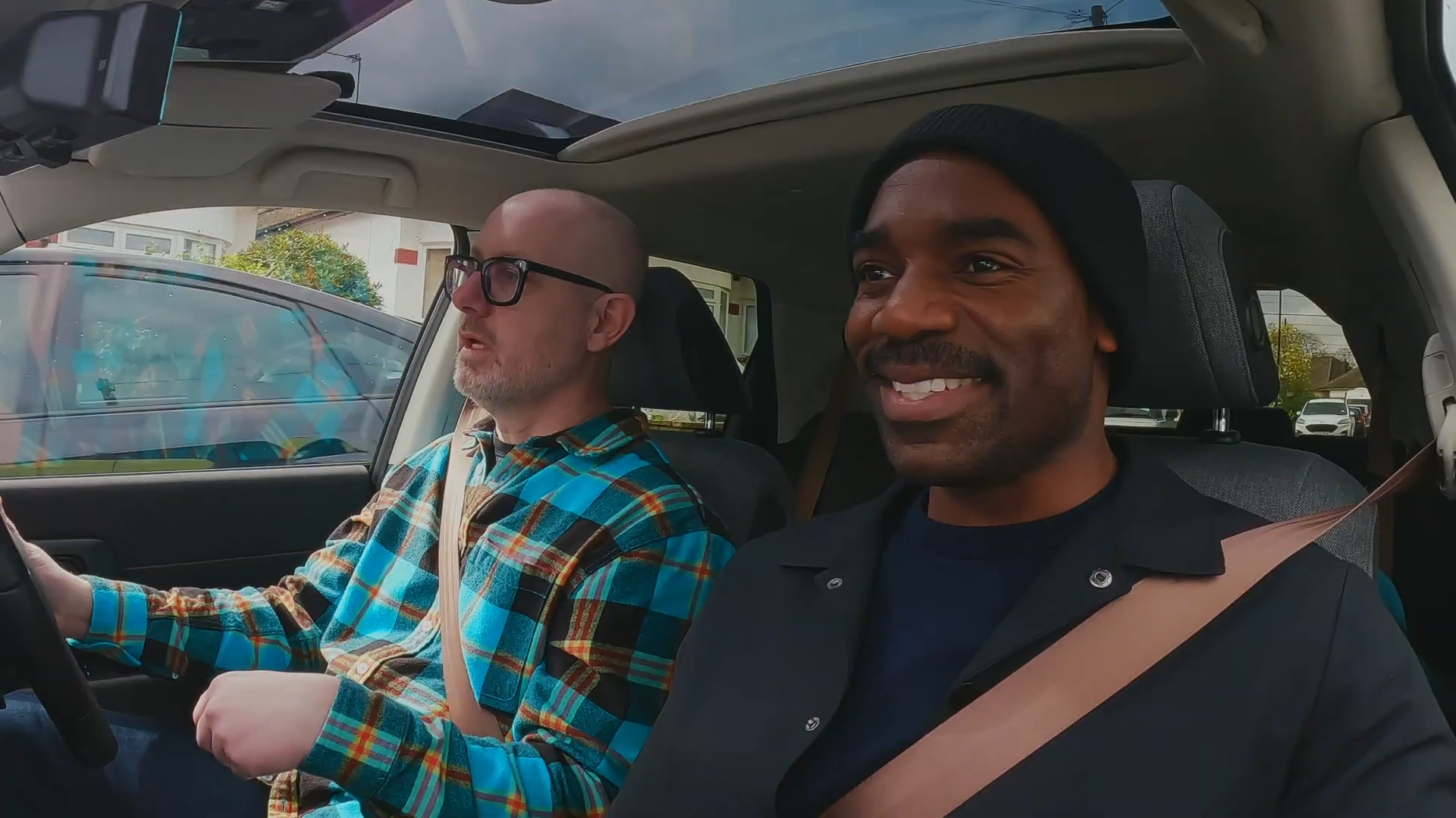 Honda customer Ed taking Ore on a test drive of his e:PROGRESS car.